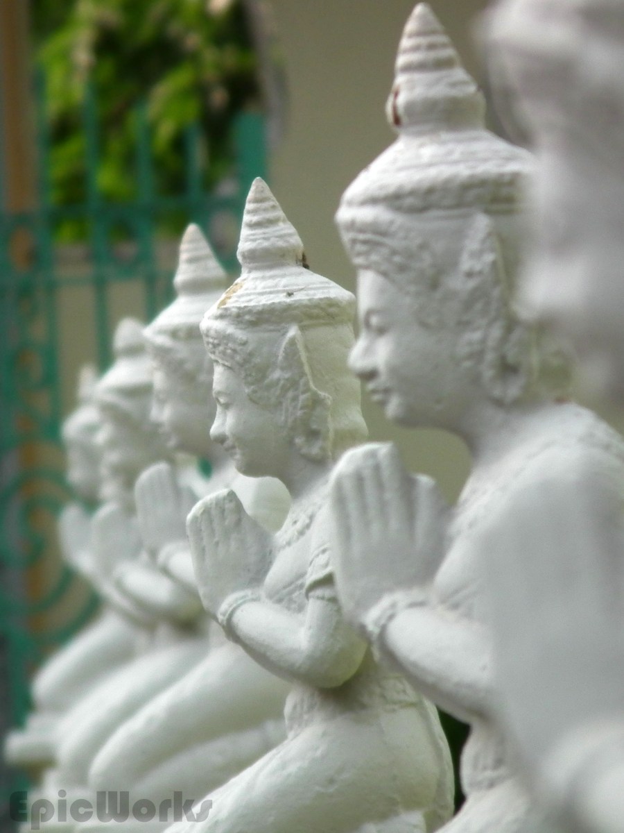Praying statues at the entrance to the royal Temple