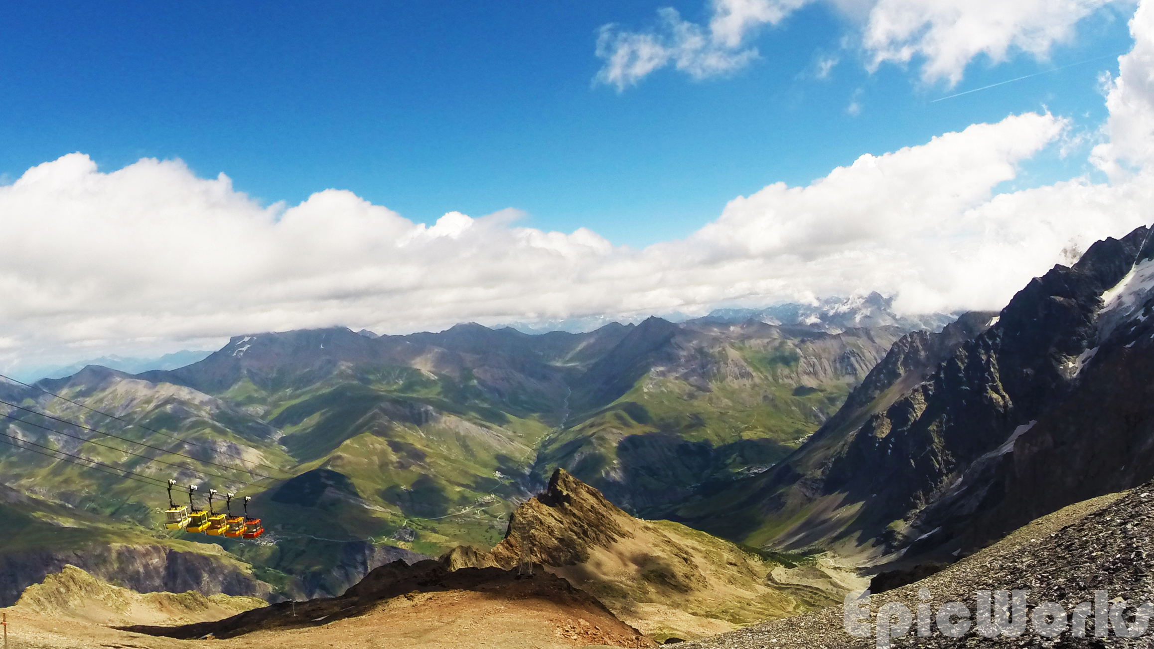 We had left Grenoble on the Friday evening after work. J, JB and myself. Large packs full of food, ropes, tents and kit had been thrown into the boot and we’d set off towards La Grave. Overcast skies announced the storms that were supposed to hit the Alps during the night. Arrival at the small village we still had enough light to look up, up towards La Meige and the building that showed the cable-car station atop the mountain. That was our destination. We weren’t going to take the easy way though. Seriously? Yes. What kind of cheap students do you think we are? We prefer to hike the 1800 metre climb! So off we went, happy to be in the mountains and still dry. As we climbed the view unfolded behind us: first the Aguille du Goleon (which I had tried to climb a few weeks before with T) followed by Les Aigulles d’Arves and the Grandes Rousses. To hike up there are several possibilities, but we chose the path that goes up the Vallons de la Meige. This is one of the most classic descents in the winter; it was strange to see it all without the snow. We also realised that some of the places which on skis seem like a joke are quite steep without the powder! Three hours in, we were in a massive moraine (scree formation made by glaciers), in the dark and trying to find a way up. Two hours later we had finally made it to the top. Completely exhausted we searched around for a small hut which was supposed to exist near the cable-car arrival. Perched on the edge of cliff a small wooden cabin welcomed us in out of the cold. We immediately ate and went to bed. Tomorrows objective: Pic de la Grave!