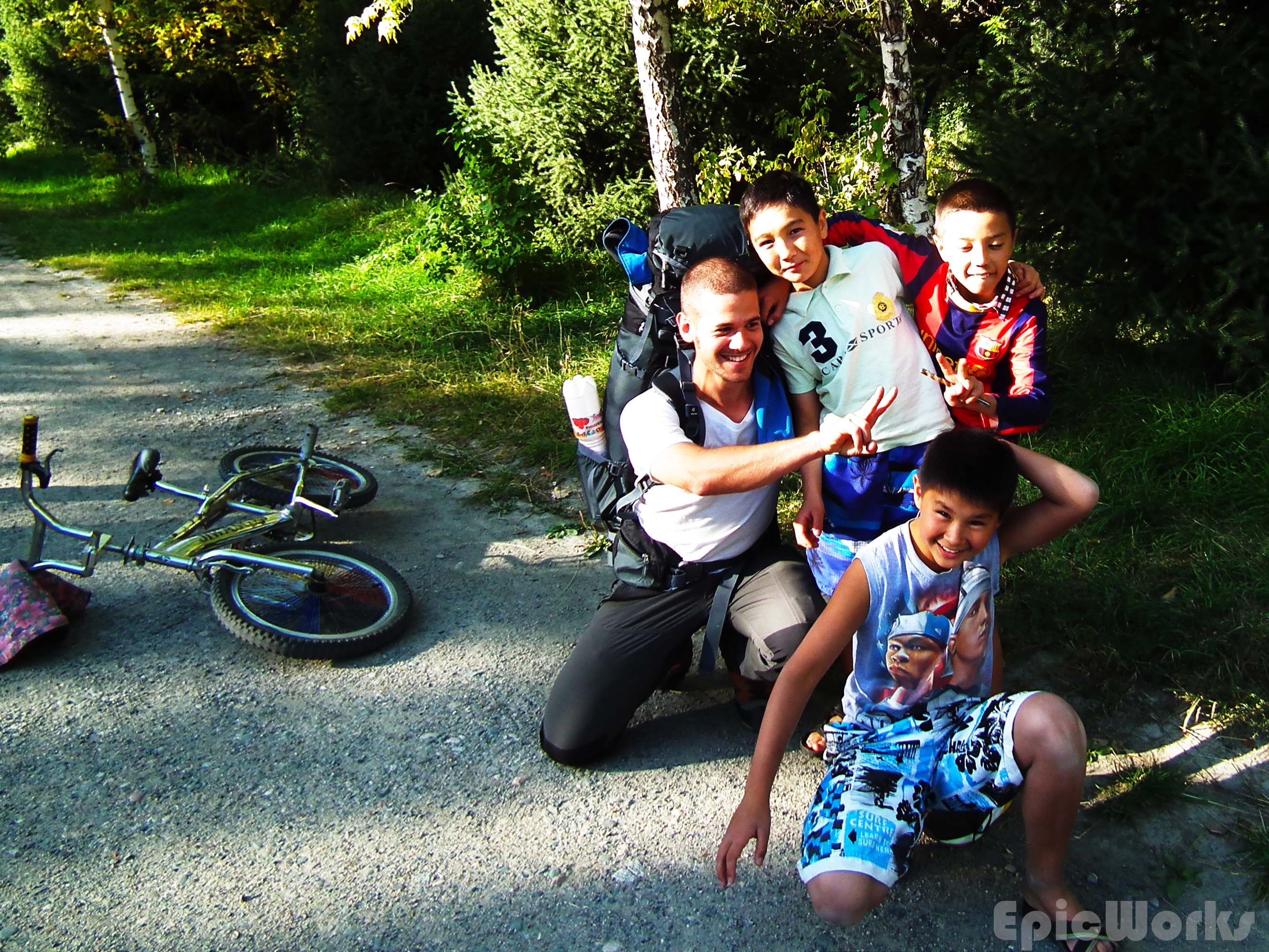 Alex took us around one of the parks were we met some local kids and some girls passing by. The girls kindly bought us some snacks and for the first but not last time we were amazed at these peoples kindness. After, as it was too late to head off so we camped in one of his Soviet’s (a friend of Alex) garden before heading of next day.