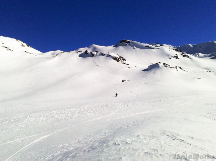 After two failed attempts, Jordi was back to try out some rando skiing. This time, not only where the conditions better, they were perfect. I was spending the week in Valmenier, so when J arrived on Thursday we had to make the most of the end of the week. And I already had a plan. So next day, after a late night we were heading up the valley, leaving the chalet behind, destination Thabor. At 3178, it’s a classic peak, and being almost highest of the range offers an incredible view from the top. Just below there is a small chapel was built in 1951, although there is record of a previous chapel since 1487. What J didn’t know is that most people do it from the other side. Not because it’s easier. It’s just slightly shorter!