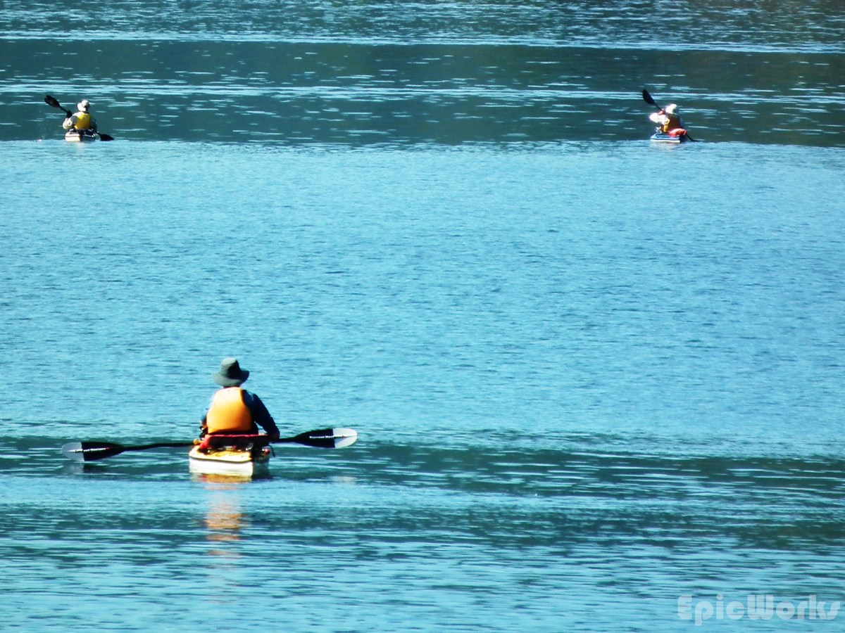 Another group of kayaks, off in the distance.