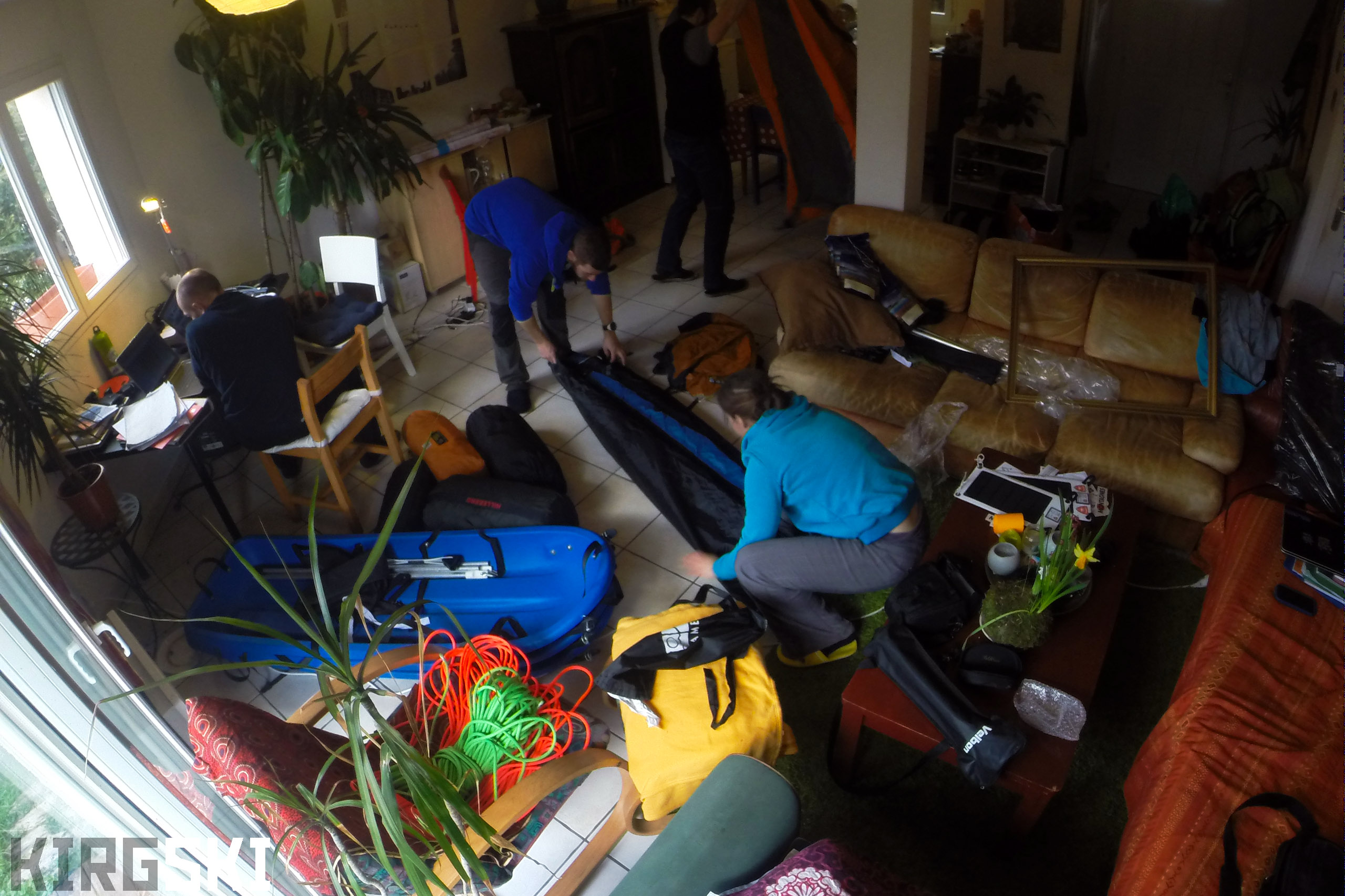 Organising the kit: checking the space in the pulks and discarding un-essential items.