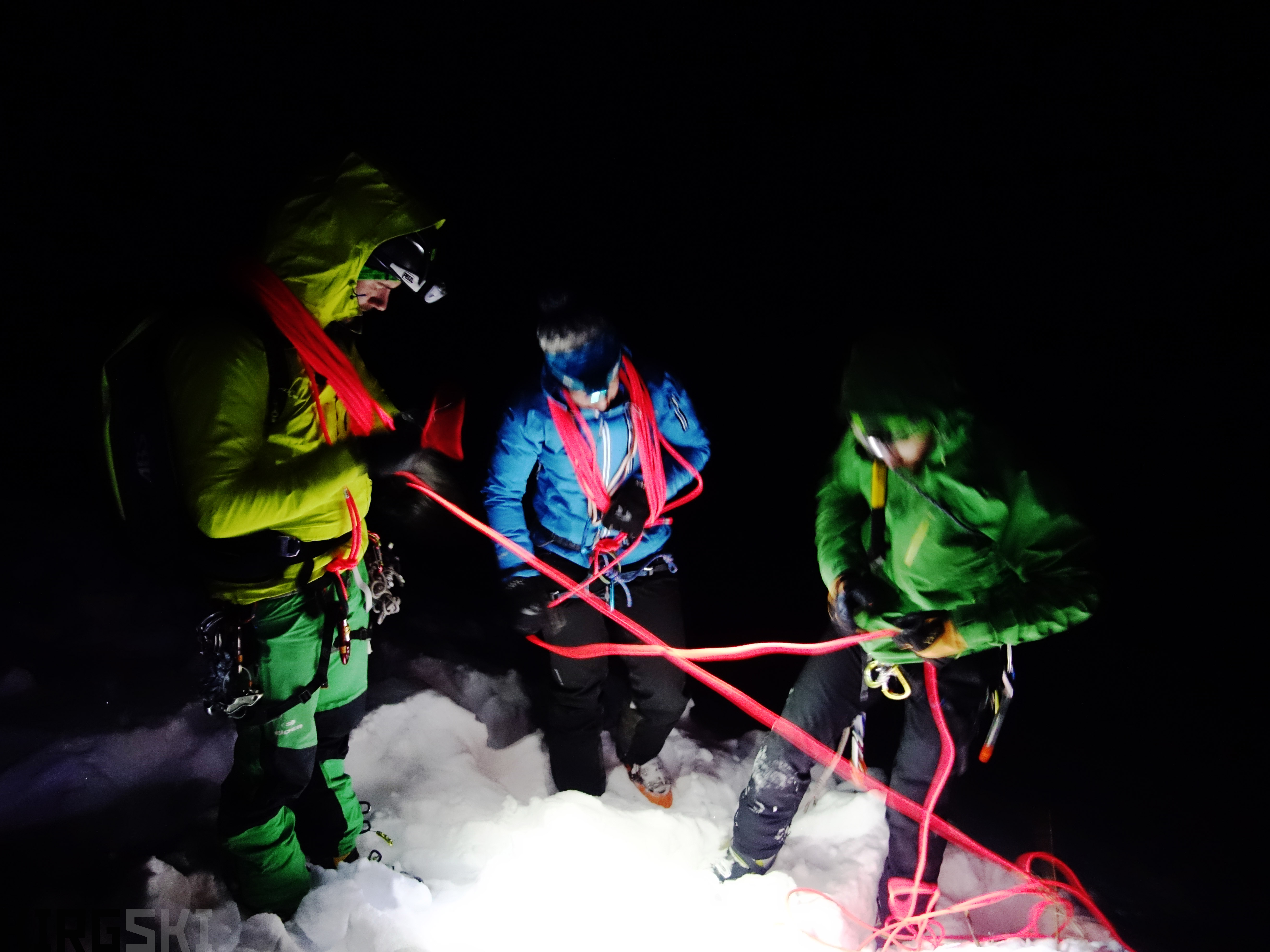 After dark rope-work, going over crevasse self rescue operations.