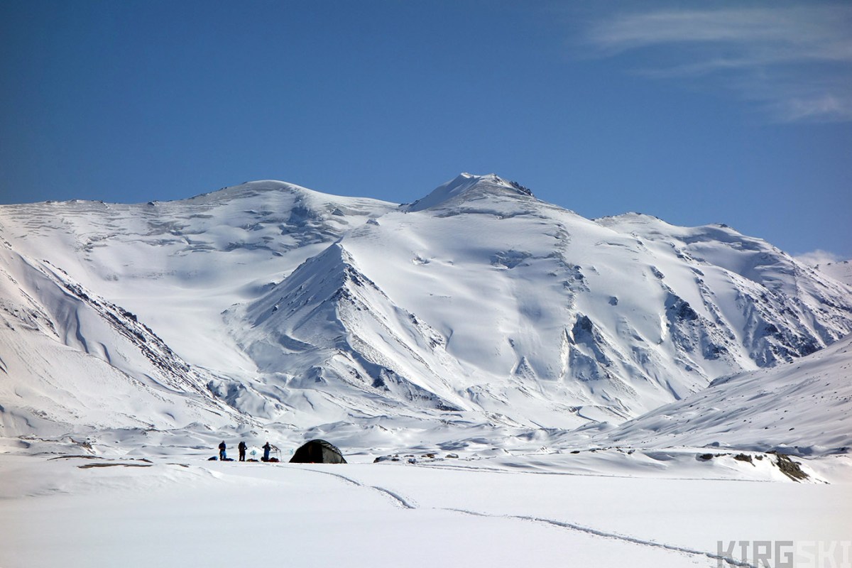 Ice giants. Camp 4 Nico, Sev and Arnaud just getting back from a day’s skiing. Our tent is dwarfed by theice giants all around.