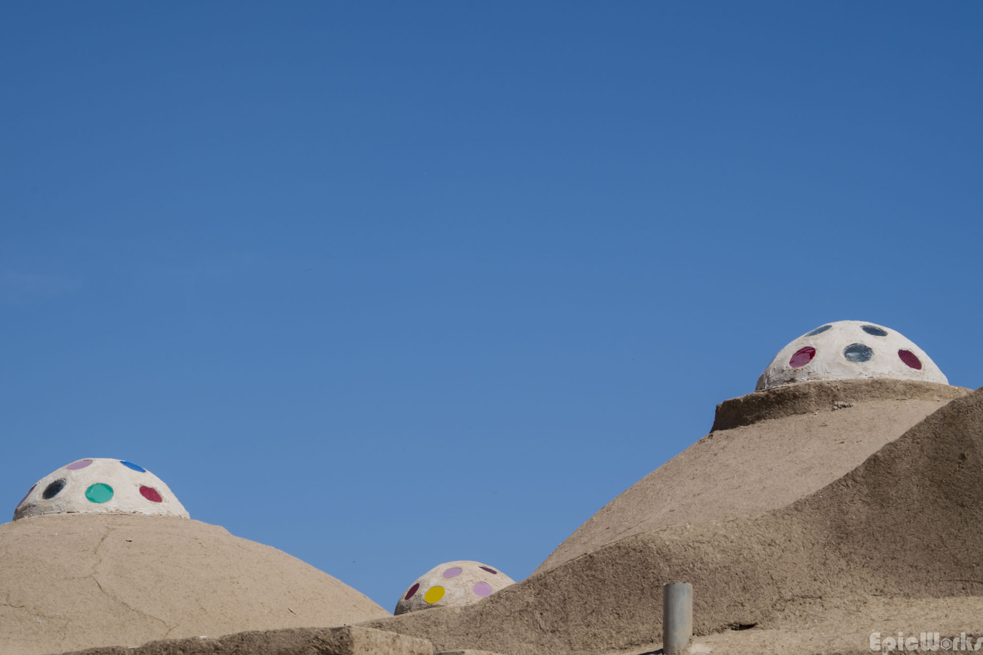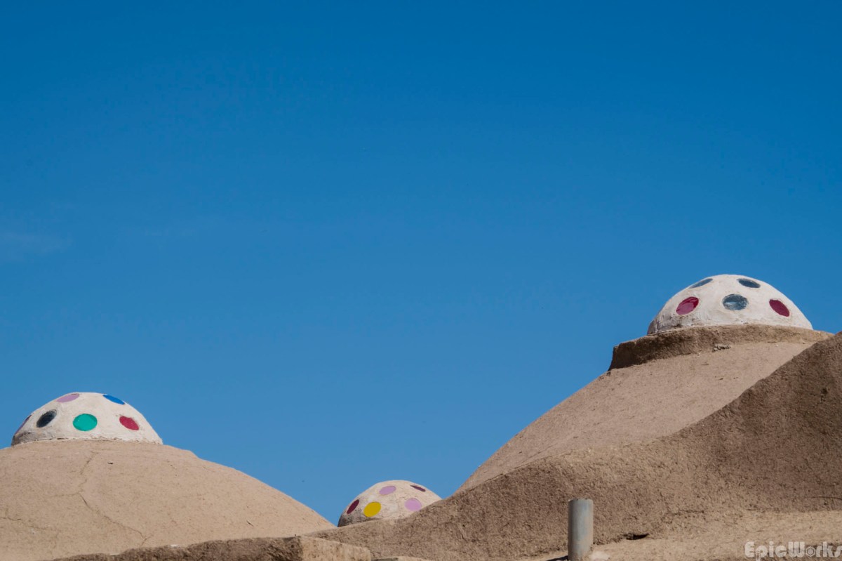 The roofs of Yazd, the couloured skylights illuminate the streets of the bazaar below.