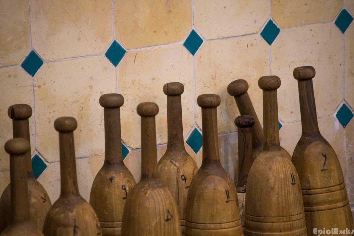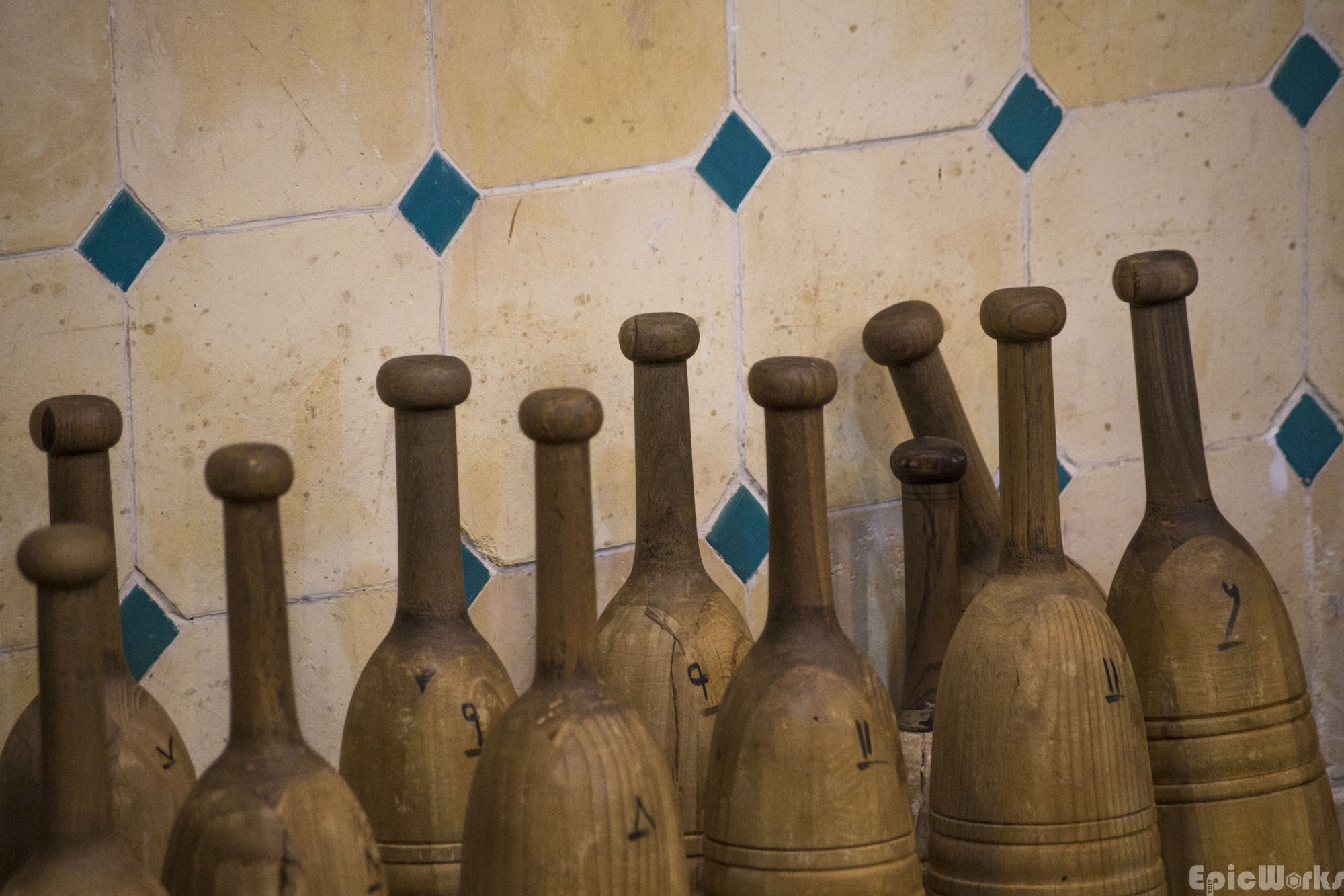 The wooden weights, or meels.
