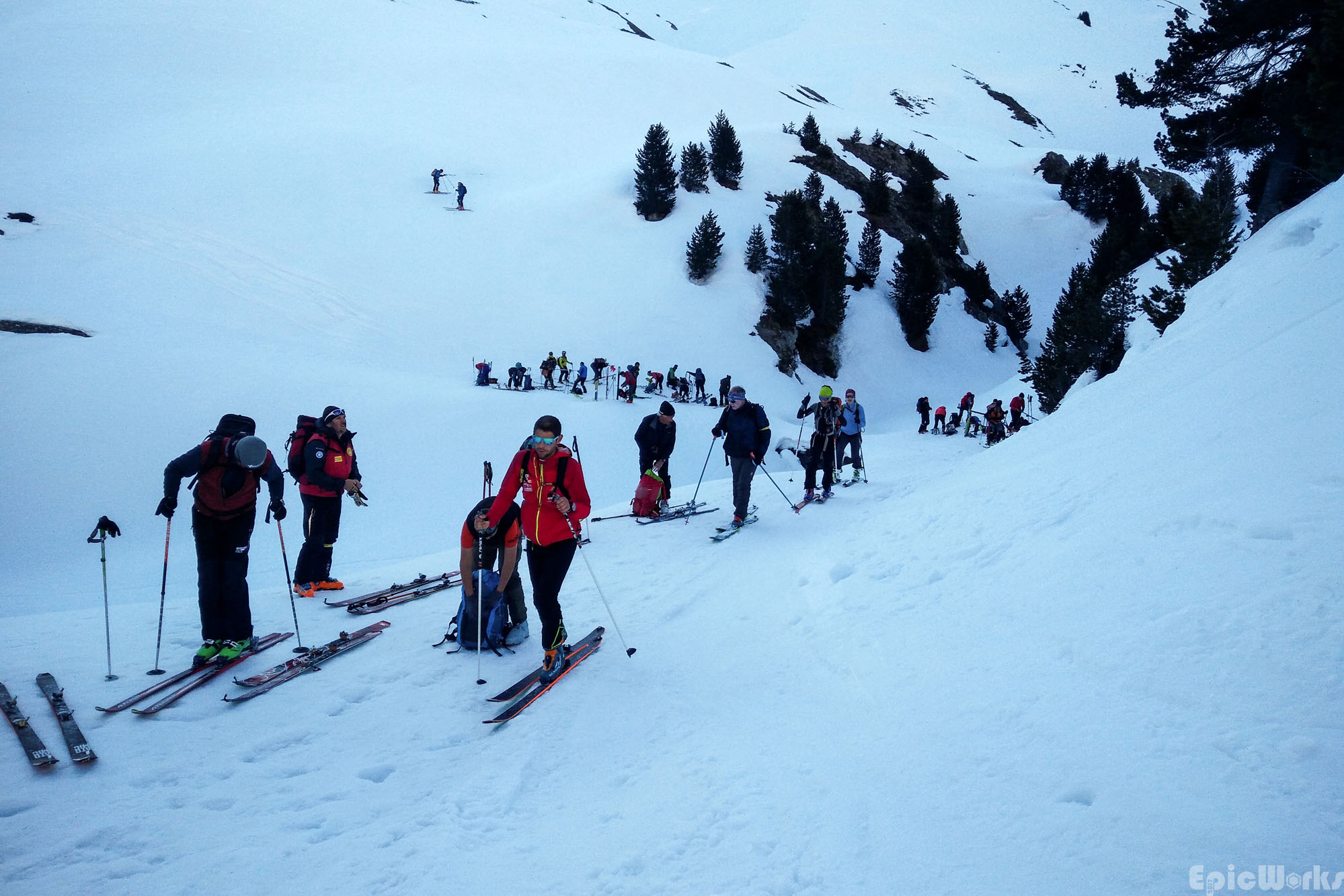 The first pause, where we caught up with part of the group and put our skins on.