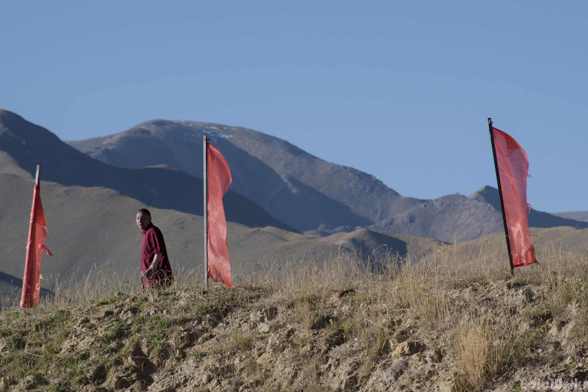 A monk looks down at our passing.