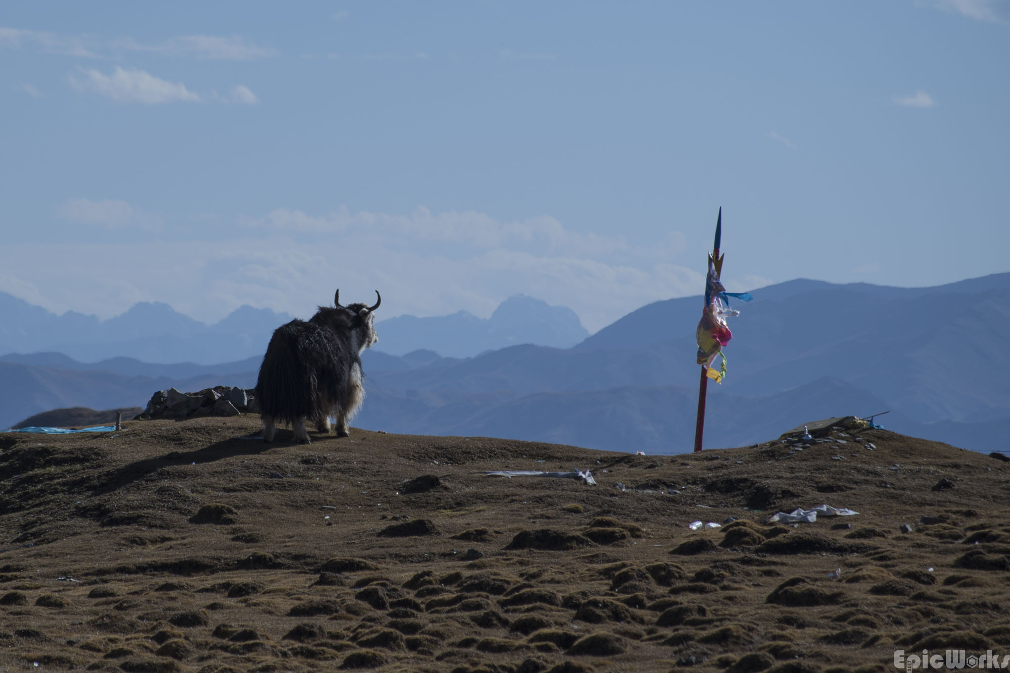 A lonely yak looks out from atop of the pass, maybe thinking of pastures long gone…