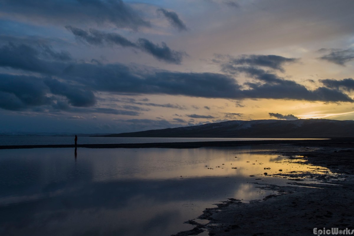 Thomas head out to the waters edge to enjoy the last glow