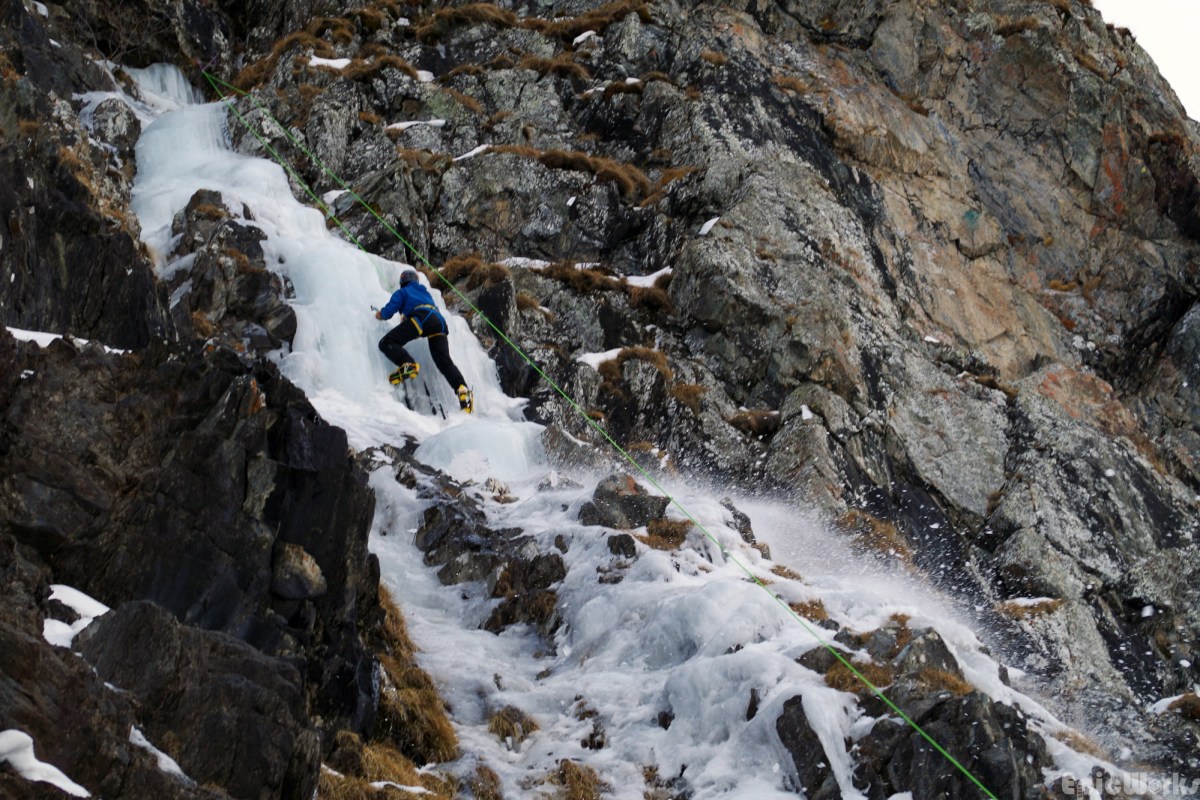 The brittle ice brakes upon impact, tinkling down the rocky slope 2016