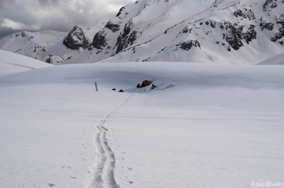 Our camp, protected in the lee of a snowdrift, in the middle of the plateau