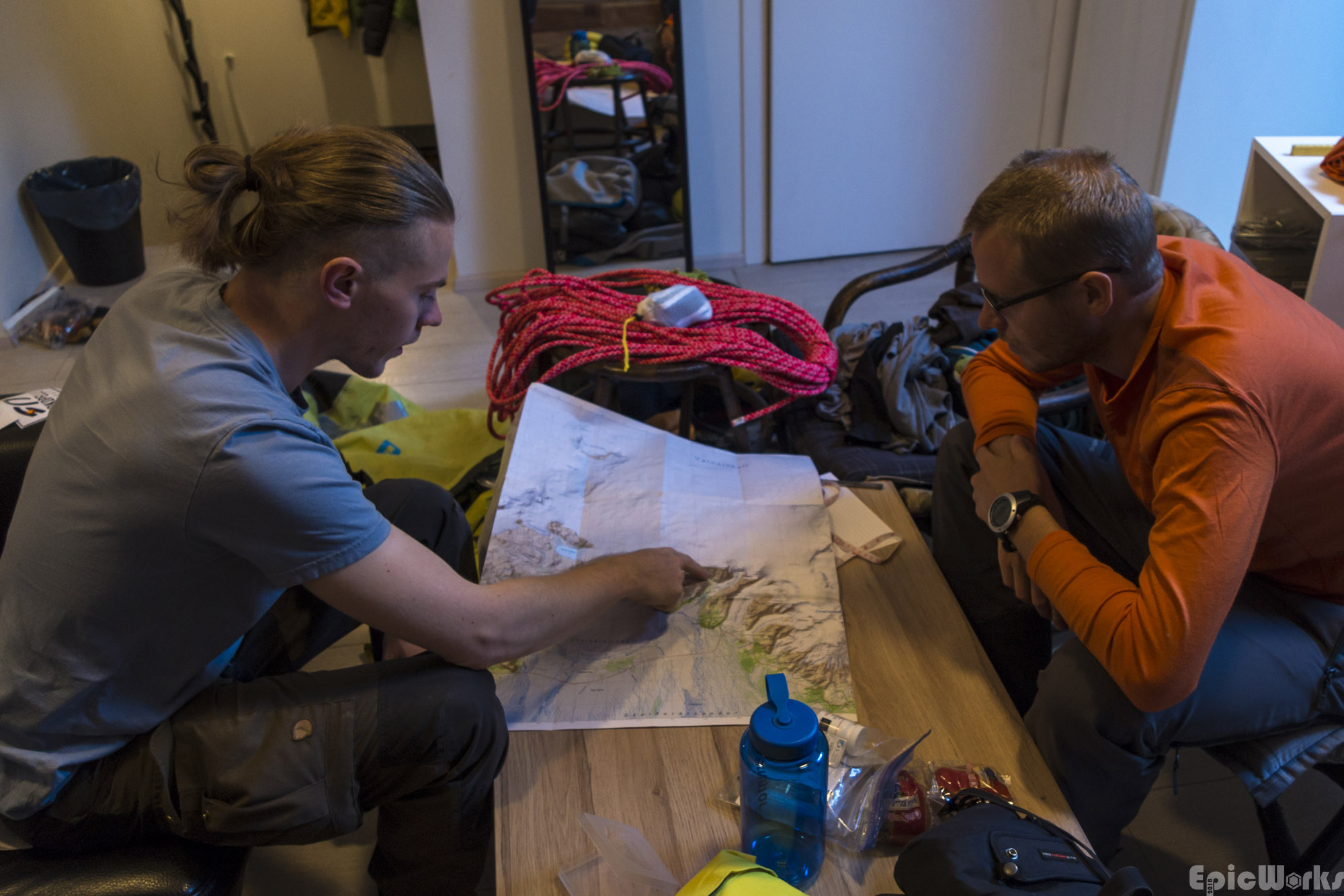Fannar gives council to Greg about the best acces to the glacier at Skeithararjokull