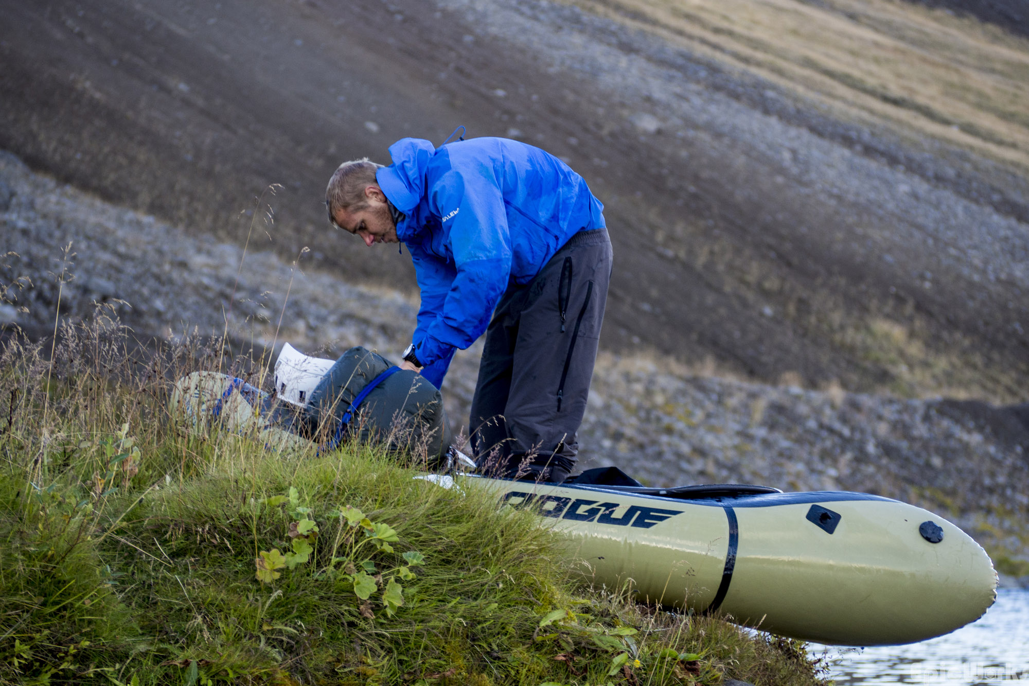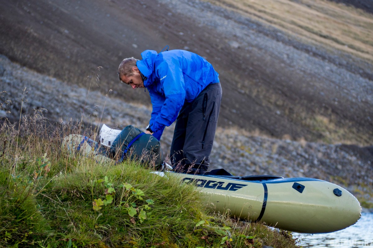 Unloading the raft at the end of a great afternoon, ready to hike back up the valley