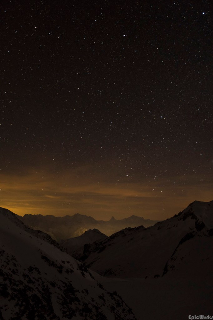 It also proved to be the perfect spot from where to attack the summit the next morning. Rising once again beneath the stars, we advanced on the culminating point. Looking back the orange glow grew brighter on the south horizon. Suddenly the new day flashed across the infinite alpine peaks.