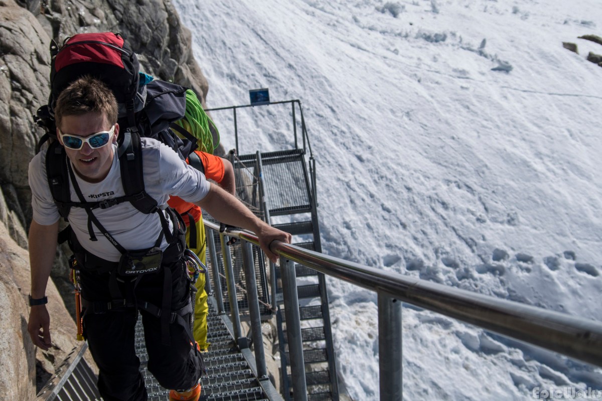 Rise above, the staircase is fastened to the steep wall above the ice