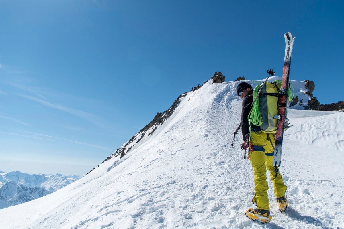 The summmit ridge of the Hinteres Fiescherhorn awaits