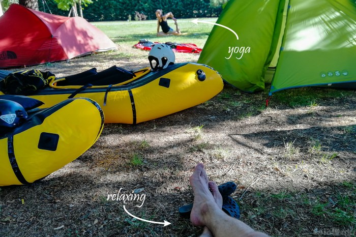 It was a lovely experience. Arriving on the second day we set up our tent while everyone was out on one of the rivers. This gave us time to unwind and start taking in the beautiful landscape. We were first to meet Max, the organiser, who had put so much effort into making it a perfect week We are very grateful for his initiative! He then introduced to the other members, who hailed from all over the world. Having been a multiple-times exchange student, it gave me the same vibe I’d first sensed when arriving in a new country. There was a great atmosphere created when people from different walks of life are thrown together. As we went around we soon realised that many of the packrafters had already met at previous meet-ups and it was a tight-knit, family-like community.