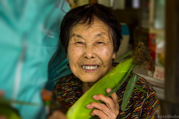 A delicious aroma greets us from the side of the road. It is sweet corn, slowly cooking next to the fields. Some huge tomatoes are laid out for sale. A gentle, wizened face greets us with a toothy smile. We decide to eat some corn and she picks some out, always talking and smiling. The language barrier does not matter one jot. We are asked about our travels. Have we encountered any bears? She gesticulates; showing longs claws and big arms. She imitates its movement and stretches up, her small frame pretending to be much larger. We are told of her encounter with one of the “Kuma”. She manages to convey its danger and how she escapes. We finally leave filled by the sweet-corn and her vivacity, and will remember her during our travels. It is a great example of why we travel on a bike and she will of course always be the kuma (bear) lady.