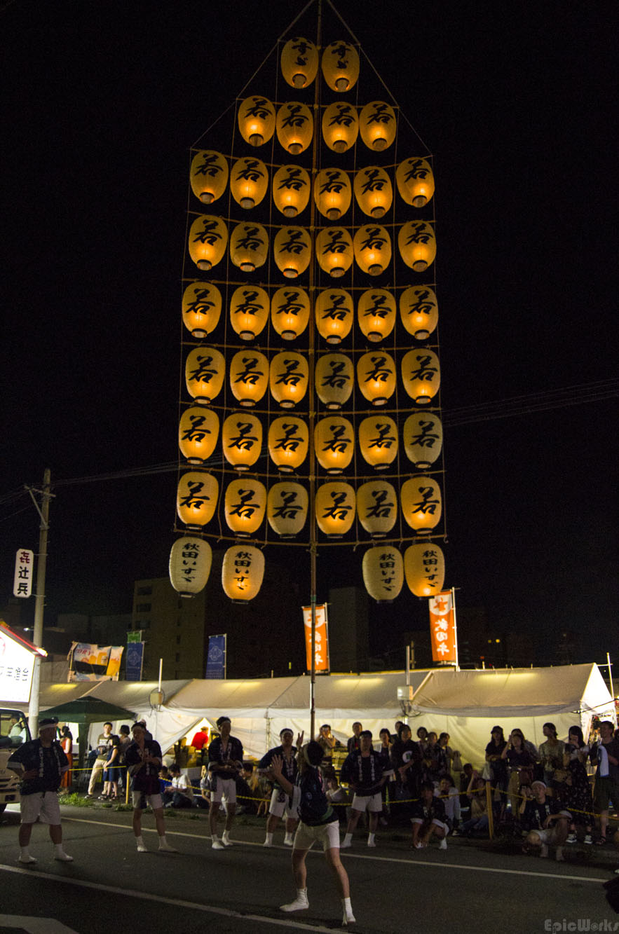It was time to leave the mountains once again and we started cycling towards the coast. As we descended, we were surrounded by more and more rice-fields. A bike path took us along the river and we saw herons and egrets fishing between the plants. It was still hot and we finally had some very sunny weather! After a couple of days we reached Akita, the main city of the province, just before the famous Kanto festival. The Tohoku region is famous for its matsuri, which take place over summer. Together with Akita, the most important are the Nebuta festival in Aomori and Sendai’s Tanabata. The Kanto is a parade of huge lantern-carrying bamboo poles that light up the night, accompanied by the rhythm of taiko drums, flutes and signing. The poles are balanced by the performers, often on their foreheads (for more see Japan’s Ten bike post).