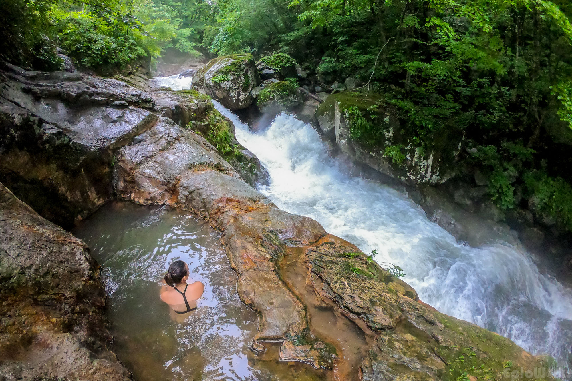 - Most treasured. Sitting in an outdoor natural onsen above a crashing torrent of icy water under the rain. After a six kilometre climb we soaked up the volcanic warmth in the middle of the forest on our own. This spot in Hokkaido was gold. Somewhere along the Hokaido east coast… (Hokkaido West Coast)