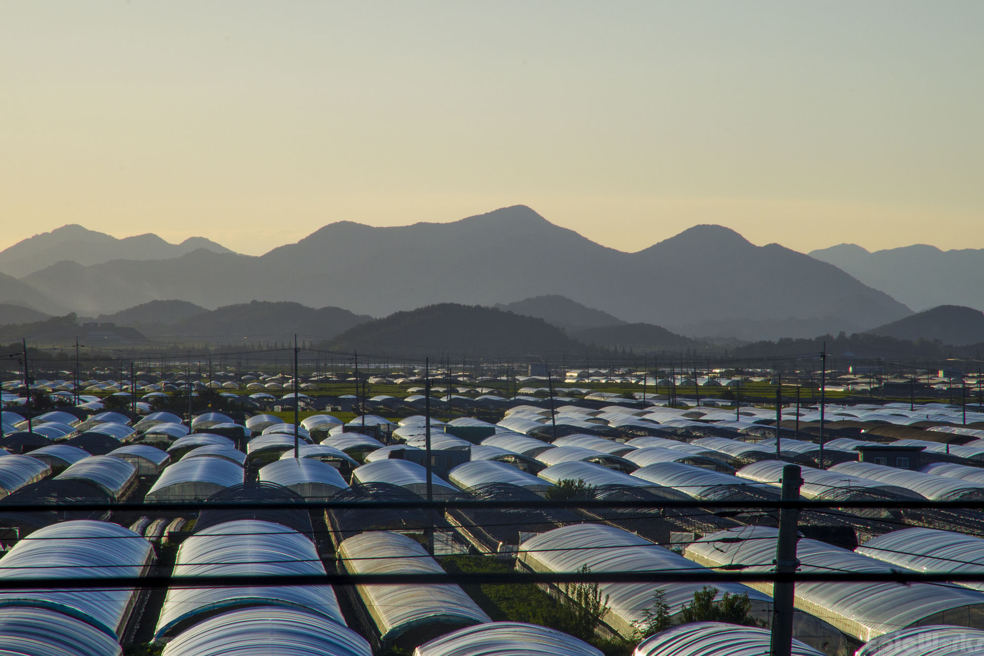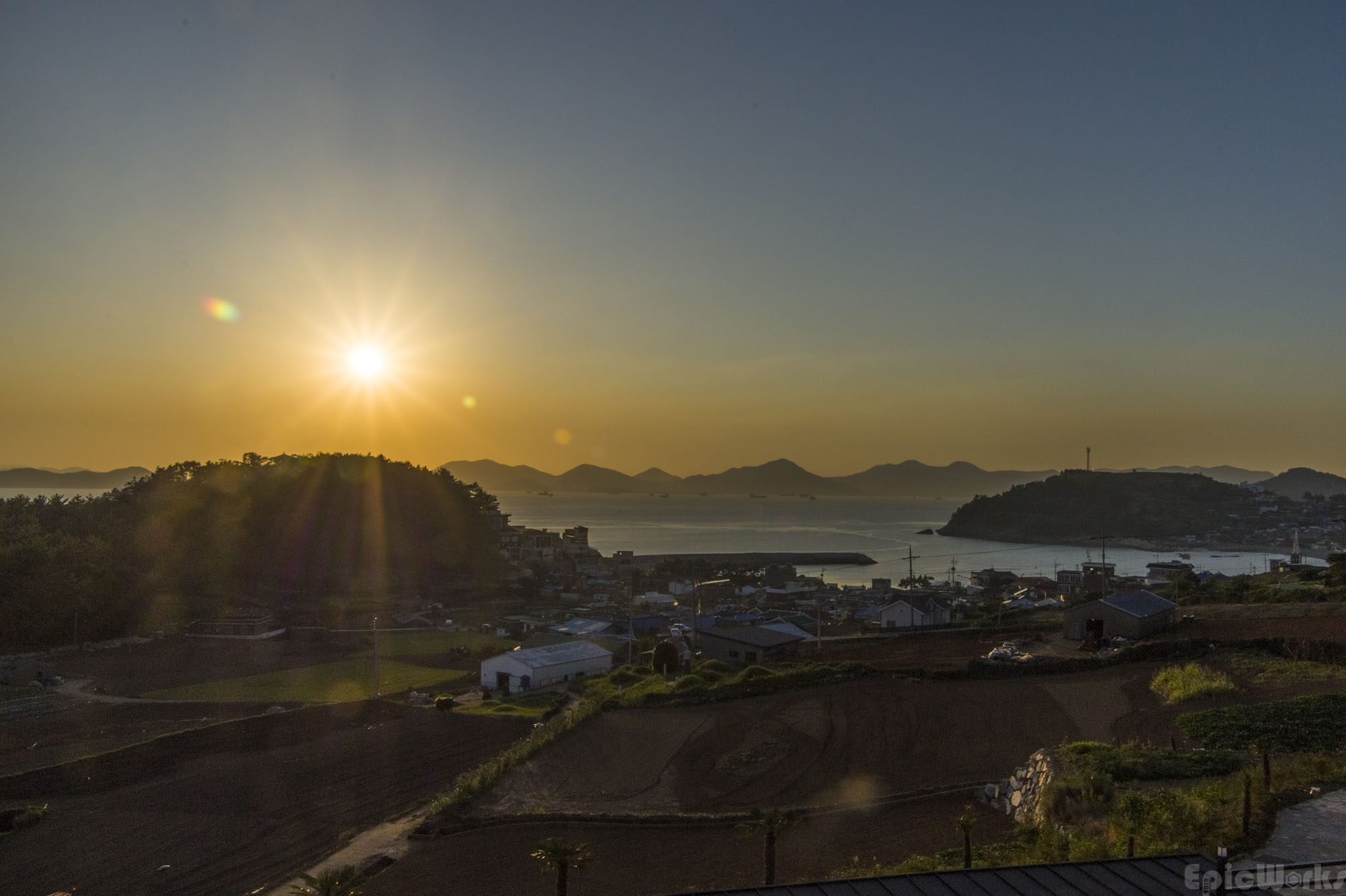 We continued touring the coastal roads, jumping from one isle to another. It was calm and like the previous day the evening gave way to an explosion of colour. We were once again running out of time to find somewhere to camp but couldn’t rush the view, which had lit up in fiery orange and yellows. The scene was made slightly surreal by the huge tankers that had no place in the calm bays west of Namhae. They slowly driften past as the sun dipped lower. We finally found a small beach where to stop and cook supper but an elderly grandmother made it clear by walking past every five minutes we were not very welcome. We crawled through the undergrowth to the edge of the village and set up our camp in the dark.