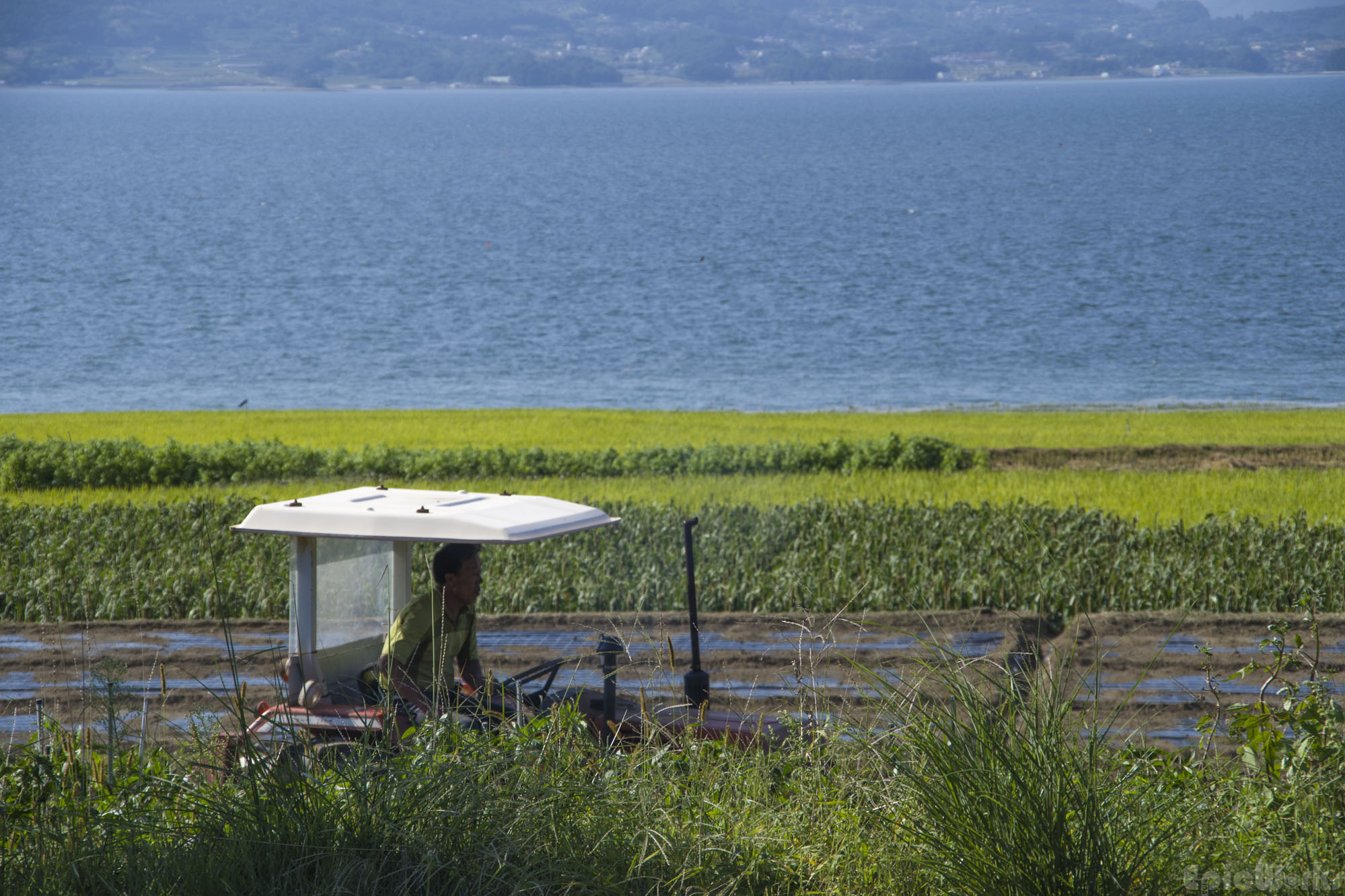 After our short stop we set our sights on the small islands that make up the jagged coast. Some are accessible by road bridges and we planned to ride across and explore the beaches. It was still hot and we approached the sea under a blazing sun. This is one of the most rural areas of the country, where traditional agriculture is the backdrop for the white sandy beaches. During the first afternoon we advanced along a small road, surrounded by multiple crops. The aged labourers were attending a multitude of tasks. The red hot spicy chillies being collected and set out to dry, and we would keep seeing them by the road for the following months, throughout east Asia. On the other side of the road a farmer was using a small tractor to plough the earth for the next crop. A group of elderly women were already at work in the next field, their backs doubled down as they concentrated on the task of planting the seeds. They used tiny stools that dragged behind them as they crawled forward, crab-like along the straight lines. We had travelled through time once again, and the scene, apart from the tractor, would not have looked much different hundreds of years ago. Sometimes, a car with tourists coming from one of the modern cities would come past, a reminder that we were still close to a changed world.