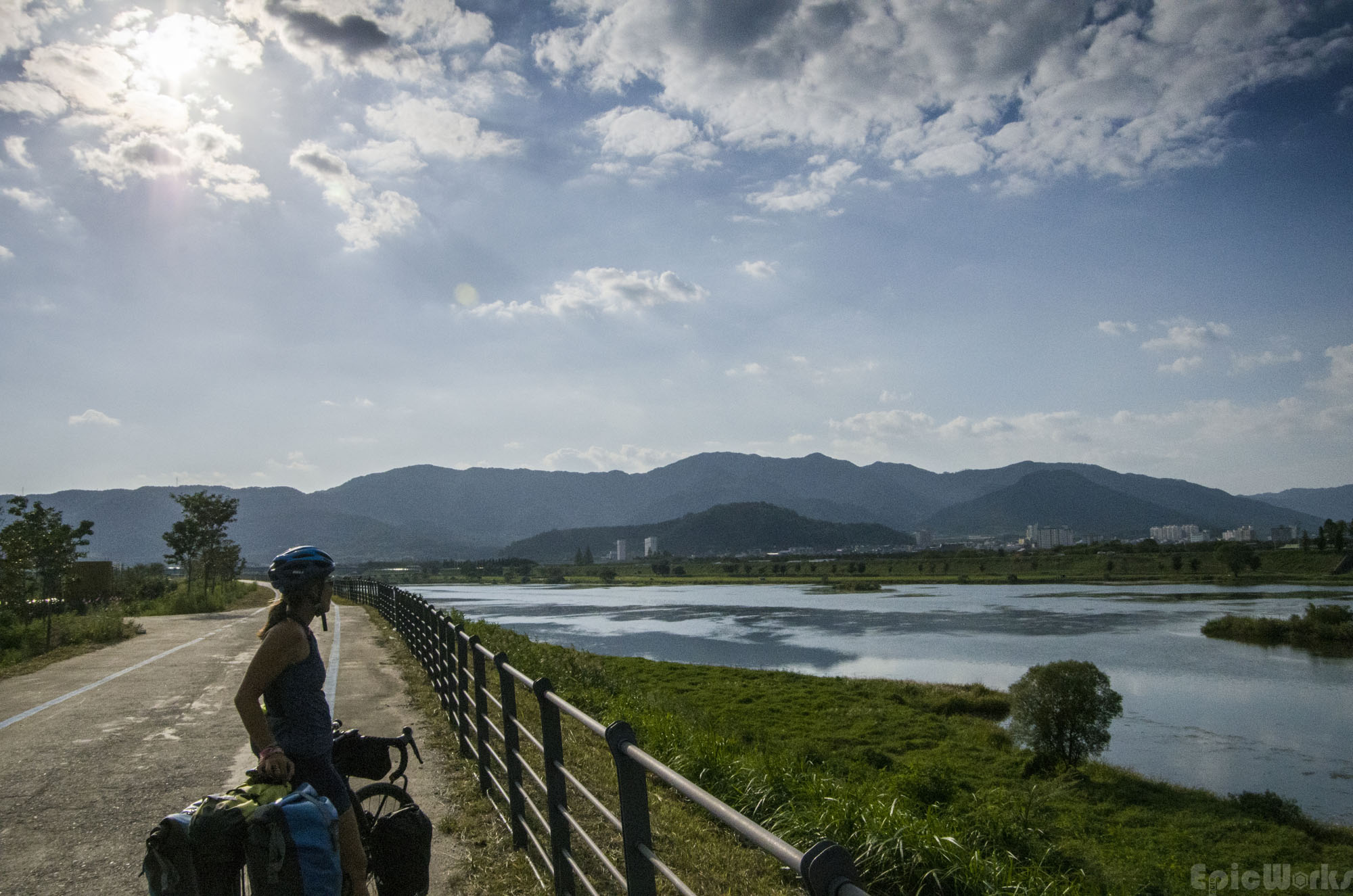 After Jeonju we left the city and set off back into the country. We were quickly swallowed up by the mountains again and got into our pedalling rhythm. The ever present gazebos would give us a place to sit during our lunch stops and shelter if it rained. We headed north.