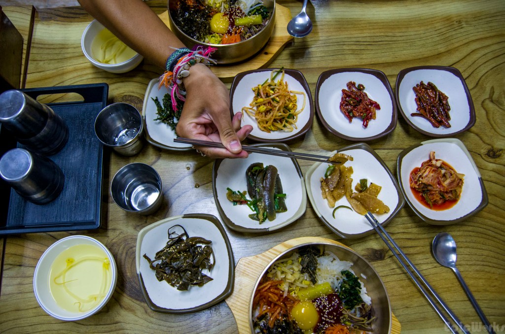 We also discovered other recipes, such as bibimbap made from rice, vegetables and egg or Korean barbecue, where small chunks of meat are grilled by the dinners at the table before being dipped in garlic or soy sauces. Thankfully on that occasion our new friend Jaehwan showed us the ropes and helped us cook. If you like spicy food, then chicken feet in chilli sauce can be very strong! A staple food is of course, fried chicken. These restaurants are everywhere and serve huge delicious portions of an American staple with a new twist. In many places you will need to bring a friend, as often in Korean restaurants the menu is set for at least two people. Eating out on your own is inconceivable. One way around this is by buying in a convenience store. You can find one of my favourite foods for a quick snack: gimbap, made from multiple ingredients and rolled in rice and seaweed. They are a tasty bite before some more pedalling.