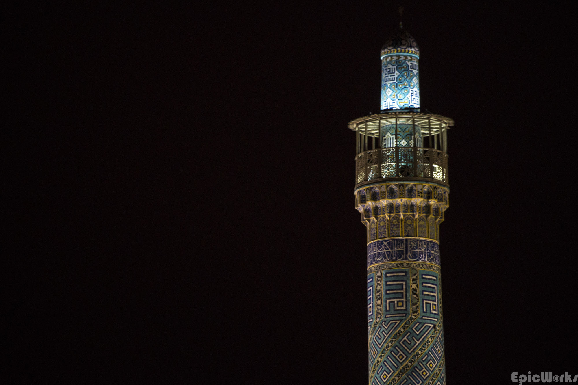 A beacon in the sky: the minaret of the Sha’s Mosque.